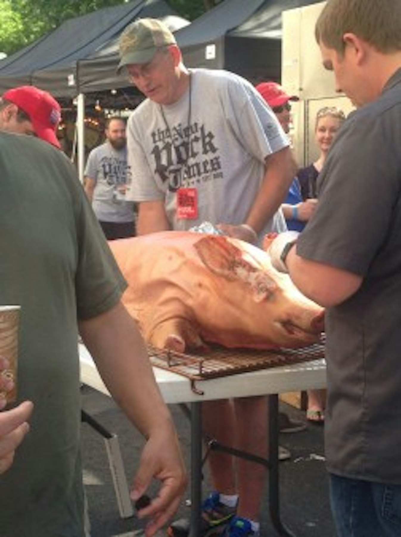 The food offering was spread across the pitmasters so there were a variety of barbecue to choose from. Pitmasters from Nashville, the Carolinas, Illinois and others offered pulled pork, turkey, ribs and whole hogs to taste, with the pigs on display before being cooked. This allowed event goers to see exactly what the cooks have to do to prepare the meat for the smokers and how the pig is broken down once it’s done cooking.
