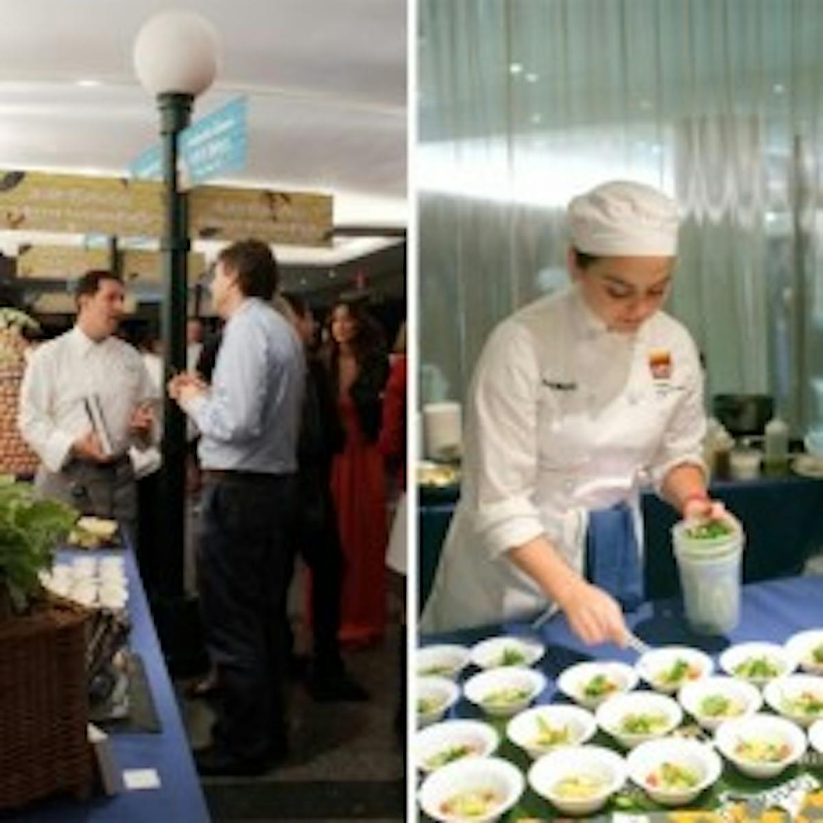 Celebrated chefs like Gramercy Tavern’s Michael Anthony offered creative takes on refreshing summer fare. // An ICE culinary student helps plate Chef Leah Cohen’s green curry.